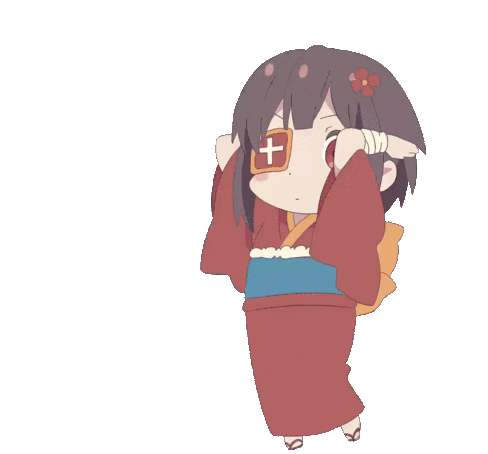 Chibi Megumin from KonoSuba joyfully dances in her traditional yukata, showcasing her cute and energetic moves.