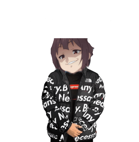 a girl is wearing a black jacket with supreme written on it