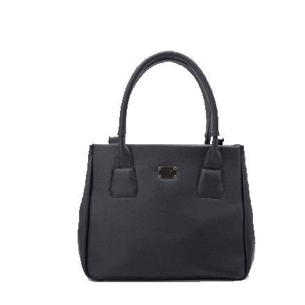 A stylish black Melina Bucher Indy Bag, a sustainable and vegan handle bag, rotating to showcase its design.
