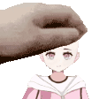A hand gently pats the head of the Vtuber character Melkozito, showing affection or comfort.