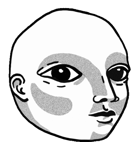 Meltem Meltemsahin's abstract face drawing melts and shrinks into a distorted form, then reforms, conveying emotions of sadness or distress.
