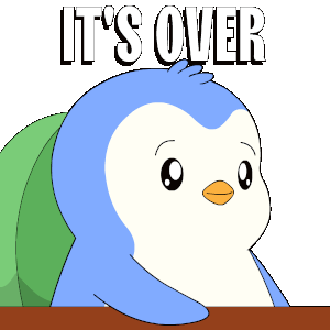 a cartoon penguin with the words it 's over written above it