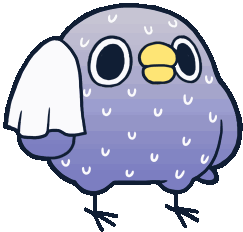 Mentori Panic Bird, a cute cartoon bird, appears nervous and sweating, indicating anxiety or caution.