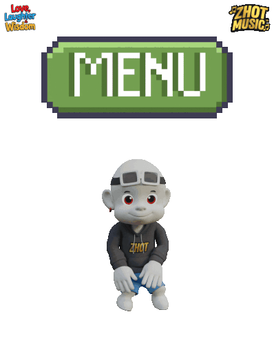 a cartoon character is standing next to a menu button