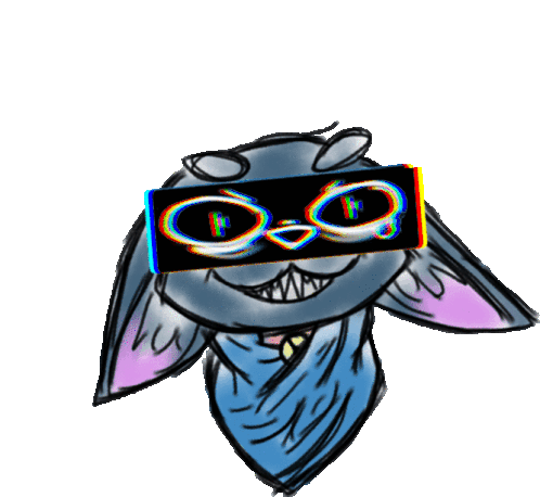 Meo, a cartoon bunny-like character, sports glitchy pixel glasses with shifting colors, creating a cool digital effect.