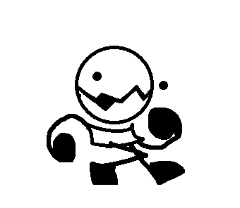 a black and white drawing of a cartoon character with a broken head .
