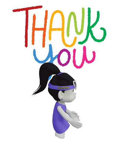 a cartoon girl wearing a headband that says shotcita stands in front of a thank you sign