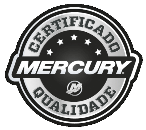 An animated 3D logo for Mercury Certificado Qualidade, featuring a rotating silver and black design with stars.
