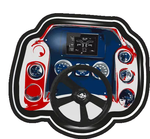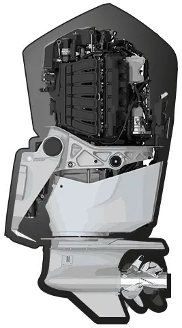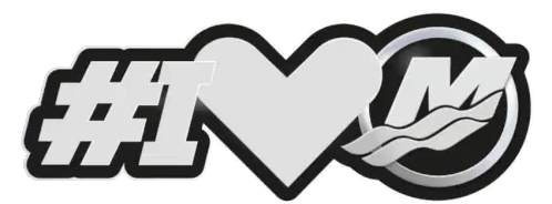 A sleek white Mercury Racing powerboat with red and black graphics, showcasing speed and performance.
