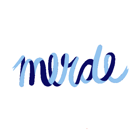 Animated sticker featuring the word 'merde' (shit) in a flowing blue ribbon-like script, moving dynamically.