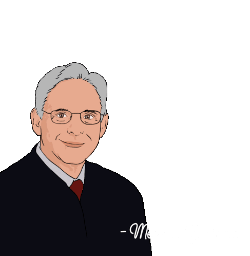Animated sticker featuring Merrick Garland, the Attorney General, smiling and advocating for justice for all.
