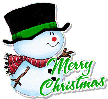 A cheerful snowman wearing a hat, scarf, and mittens, holding a snowball, wishing Merry Christmas and Merry Xmas.