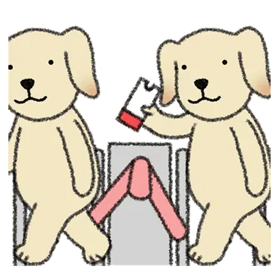 Two quirky cartoon characters on a metro train, one with a surprised expression, the other leaning in close.
