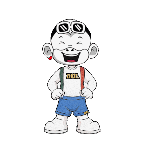 a cartoon character wearing a shirt that says ' zhot ' on it