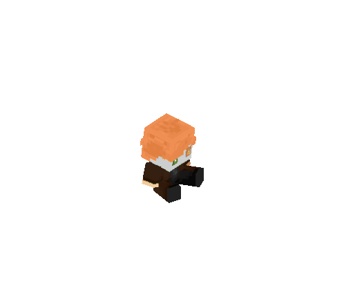 A pixelated Minecraft character from Mianite Mianiterpg, with orange hair and dark clothing, sits on a white background.