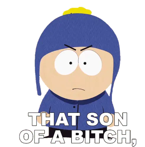 Craig Tucker from South Park defiantly flips the middle finger, expressing anger or dismissal.
