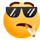 A cool emoji with sunglasses smokes a cigarette and gives the middle finger, expressing defiance.
