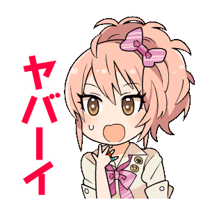Mika Jougasaki from Idolmaster reacts with surprise, exclaiming 'Yabaai!' in this animated sticker.