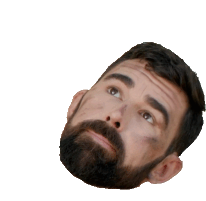 Mike Langsdale, known from Dr. Squatch, looks up thoughtfully with a bearded face and a rugged appearance.