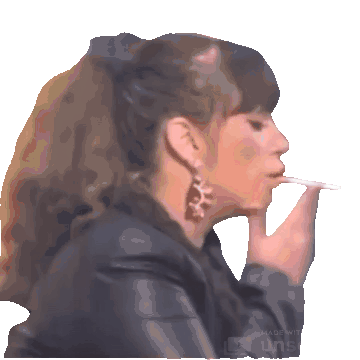 a woman in a black jacket is smoking a cigarette with a watermark that says made with love