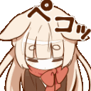 Mimi, the cute cartoon character, bows her head with a 'Pekot' sound, expressing apology or acknowledgment.