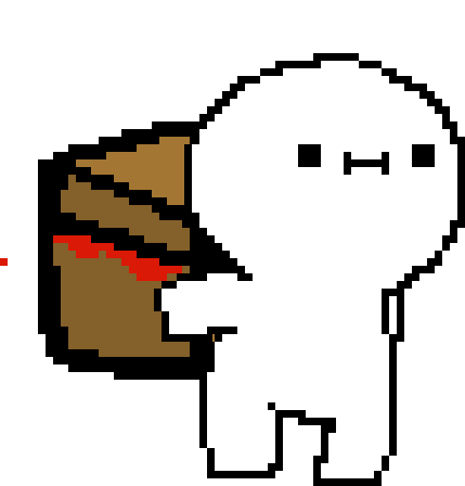 Billy Srgrafo's pixel art character holds a mimic chest, looking clueless as blood splatters.