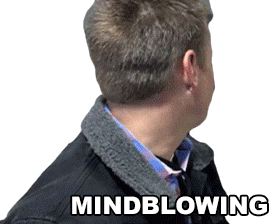 A man turns to the camera, mouthing the word 'Mindblowing' as a reaction to something surprising.