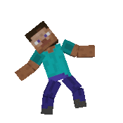 Minecraft character Steve in a playful dancing pose, captured in pixel art style.