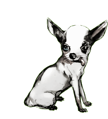 a black and white drawing of a small chihuahua dog
