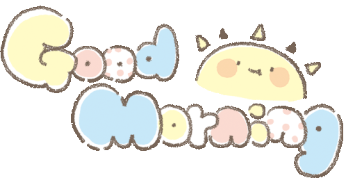 A cute Minihana sticker wishing a lovely good morning with a smiling sun and cloud-like text.