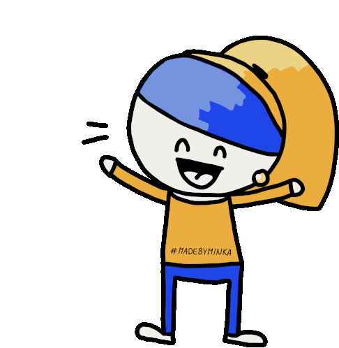 Minka, the cheerful girl character by Madebyminka, waves happily with a big smile and a distinctive pearl earring.