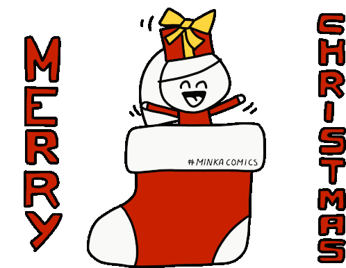 Minka Minkacomics shares festive cheer with a Merry Christmas greeting, perfect for holiday messages.