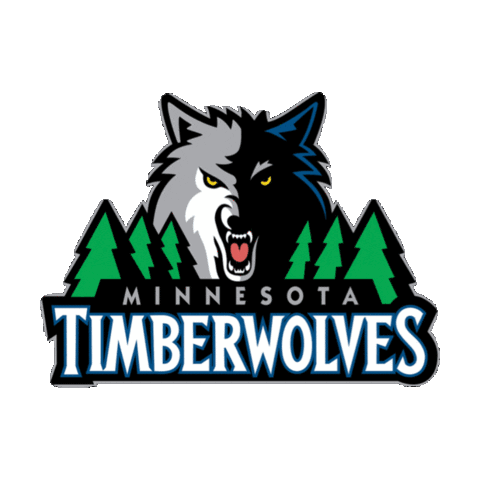 Dynamic Minnesota Timberwolves NBA logo featuring a fierce wolf head emerging from a forest of green pine trees.