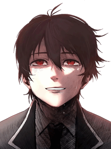 a drawing of a young boy with red eyes