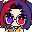 a cartoon character with glasses and purple hair is holding a book and a pencil .
