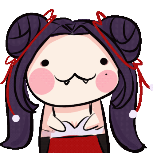 a cartoon character with purple hair and red ribbons