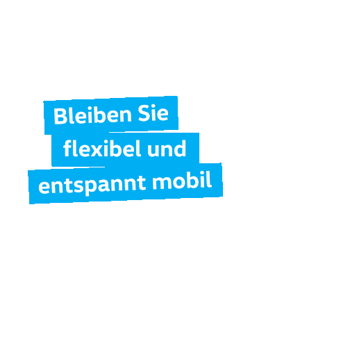 Animated sticker with a car icon and German text 'Bleiben Sie flexibel und entspannt mobil' (Stay flexible and relaxed mobile).