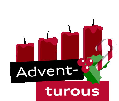 An animated Christmas sticker featuring four red Advent candles, lighting up sequentially, with the festive message 'Advent-turous & always safe'.