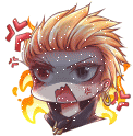 Valir from Mobile Legends: Bang Bang is fired up and angry, with flames around his head in this animated sticker.