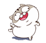 Moè Moèfear, a cheerful cartoon cat, dances with wide eyes and a big smile, radiating pure joy and excitement.