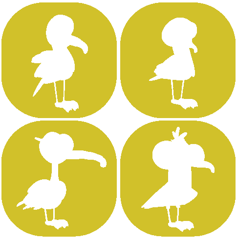 four silhouettes of seagulls in different poses on a yellow background