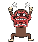 An animated cartoon monkey with a red face, baring its teeth and raising its fists in an angry, aggressive pose.