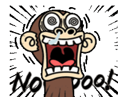 Cartoon monkey with swirling eyes, open mouth, and snot bubble, exclaiming 'Noob!' in shock.