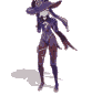 Mona from Genshin Impact performs a pixelated dance, moving her arms and legs in a rhythmic motion.