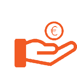 An animated Avedo icon featuring an orange hand holding a Euro coin, symbolizing finance, payment, and European currency.