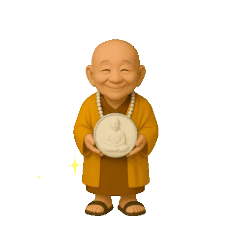 A pixel art sticker of Pepe the Frog depicted as a meditating Buddha, featuring a stylized 'a' symbol on its chest.