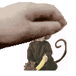 Animated sticker featuring Natalie Scatorccio's 'Monke Nat' character, a hand holding a monkey with a banana on its tail.