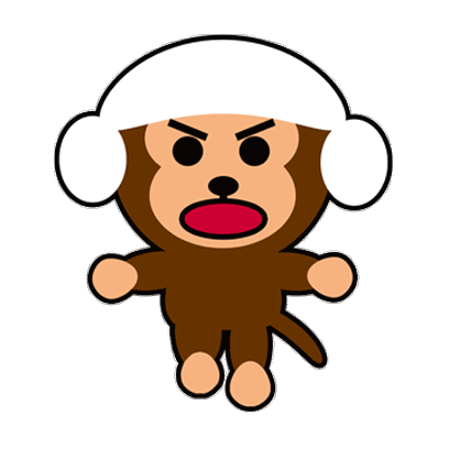 An angry cartoon monkey wearing a white winter hat with ear flaps, expressing displeasure with a furrowed brow and open mouth.