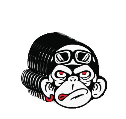 A cool Monkey High sticker featuring a stylized monkey with goggles, red eyes, and a grumpy expression.