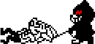 Monokuma from Danganronpa in a striking black and white pixel art style, featuring its iconic red eye, perfect for fans.